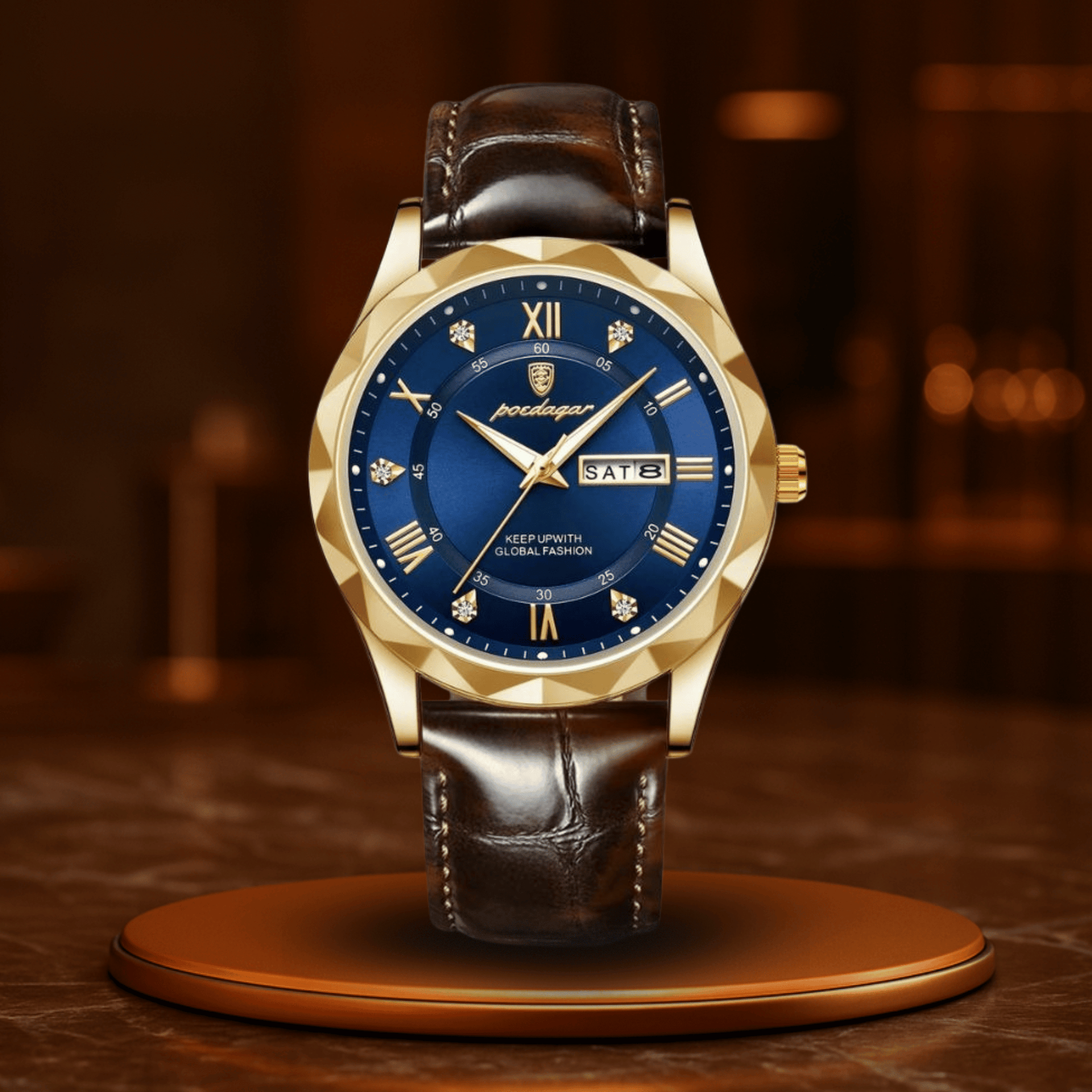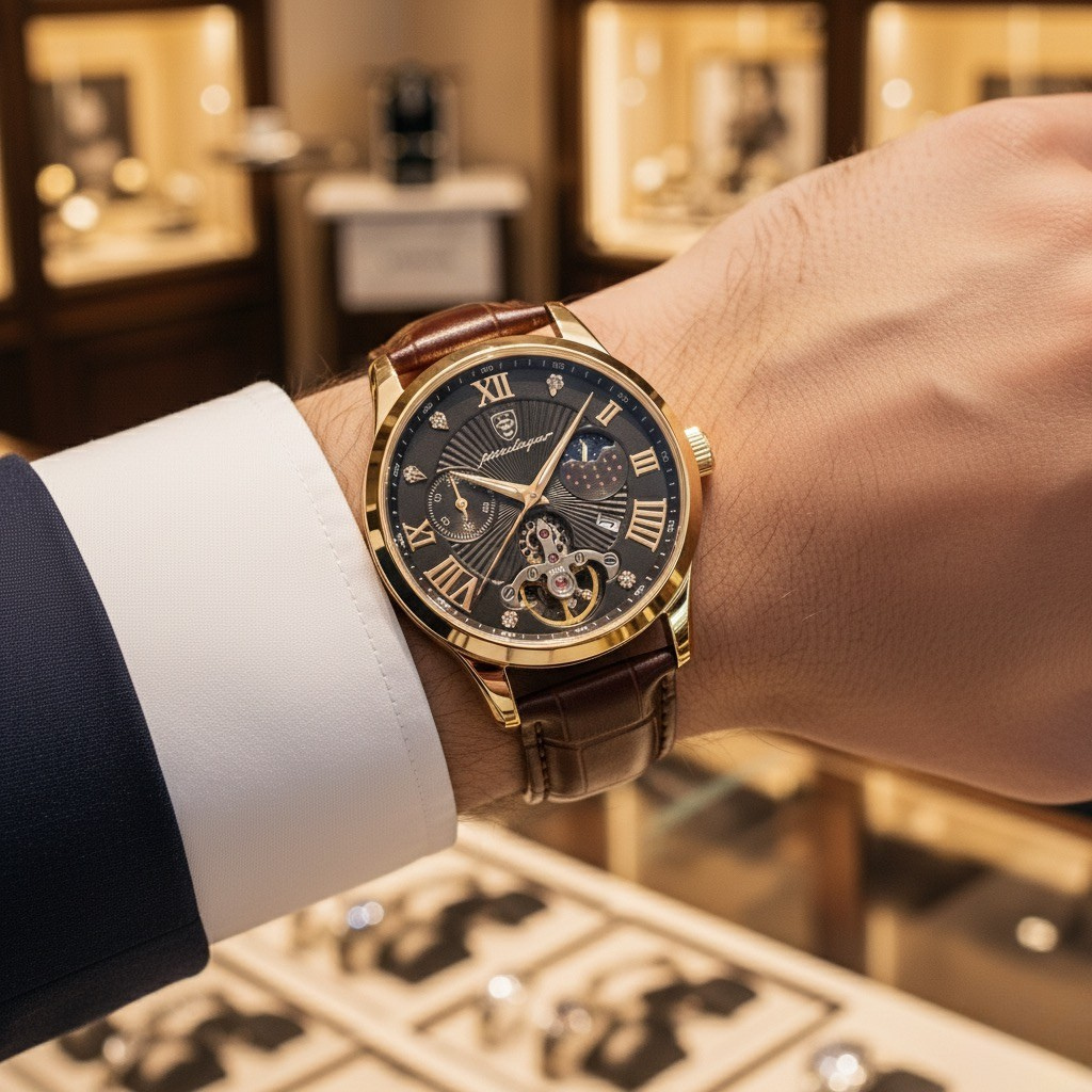 Med en raffinerad, minimalistisk urtavla, ett högkvalitativt handsytt läderarmband och ett kvartsverk som aldrig tvekar, är denna klocka din ideala följeslagare – från första mötet till sista glaset på kvällen.
