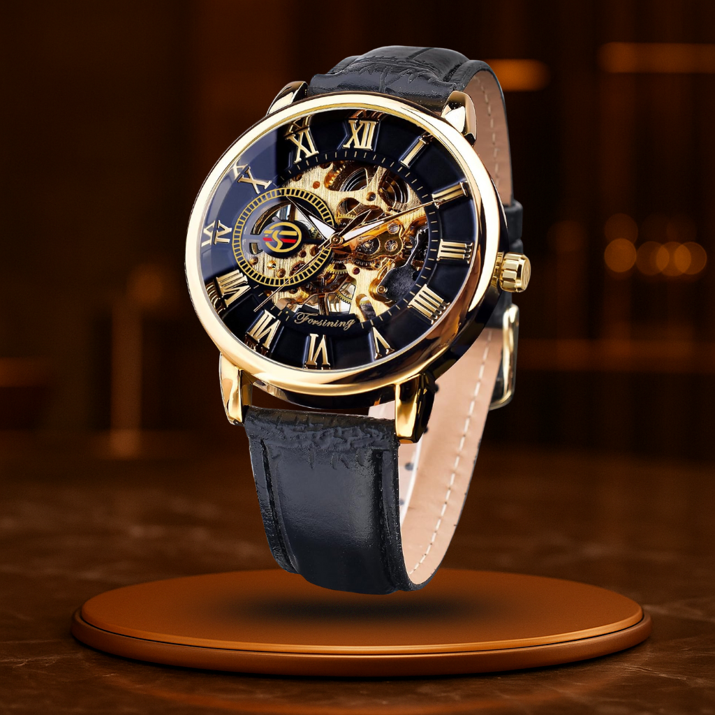 Drivs av ett finjusterat automatiskt urverk och förenar klassisk mekanik med modern design. Dess 40 mm boett ligger smidigt på handleden, medan det eleganta läderarmbandet visar vad äkta kvalitet betyder: Stil som består – även när trender kommer och går.